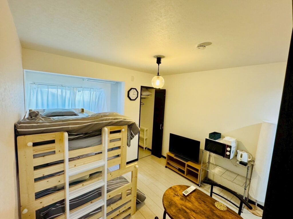 アメニティ・設備 | 【客室備品】 液晶テレビ・ヘアドライヤー・洗浄機付トイレ・無料バスアメニティ・ハンドソープ・タオル・バスタオル・乾燥機・洗濯機・寝具・バス用品・無料WIFI 【キッチン】 簡易キッチン/電子レンジ/電気ポット |