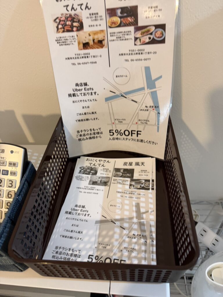 ゲストハウスTENにはレストランはございません。近隣に飲食店、スーパー、コンビニがありますので、ご利用ください。